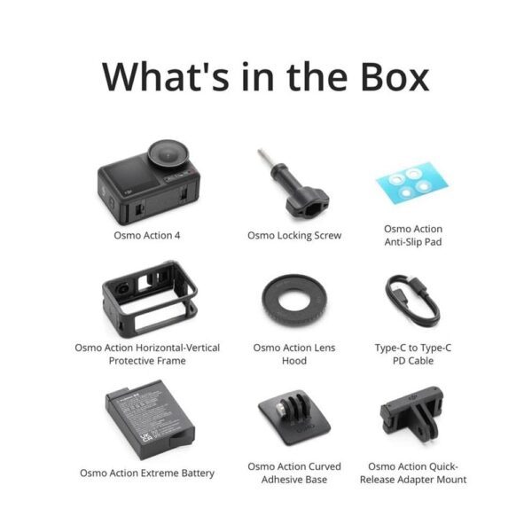 The DJI Osmo Action 4 Camera Adventure Combo is a complete adventure‑ready action camera kit designed for creators who want professional‑quality footage in any environment. Built around a 1/1.3‑inch sensor with 4K/120 fps video, ultra‑wide 155° field of view, advanced RockSteady 3.0 stabilization, dual colour touchscreens, and 10‑bit D‑Log M colour capture, this combo offers stunning footage with smooth motion and rich colours. The bundle includes multiple batteries with a multifunction charging case, a protective frame, extension rod, magnetic quick‑release mounts, and other essential accessories for travel, sports, vlogging, and extreme outdoor adventures. It’s waterproof and durable, making it ideal for capturing every moment — from underwater dives to high‑speed action