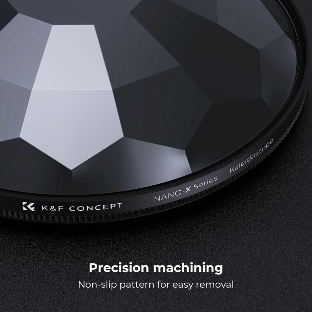 The KF Kaleidoscope 82mm Filter is a high-impact creative effects filter engineered for artists who want to transform their visuals into surreal, mind-bending compositions straight out of the camera. Featuring a precisely cut multi-facet optical surface, the filter refracts light into repeating shapes that multiply your subject across the frame, producing hypnotic kaleidoscopic patterns with remarkable sharpness and contrast. Its premium optical glass construction minimizes unwanted color shifts while maintaining clarity, ensuring the creative distortion feels intentional and professional rather than soft or muddy. The robust aluminium alloy frame provides long-term durability, smooth thread rotation, and a secure fit on any 82mm lens. Whether you’re shooting portraits that explode with geometric reflections, b-roll with psychedelic motion, fashion visuals with a futuristic edge, or music videos with a dreamlike aesthetic, this filter adds an instantly recognizable signature look. With no need for post-production plugins or overlays, the KF Kaleidoscope 82mm Filter empowers creators to experiment freely, stay in the moment, and elevate their storytelling with unique in-camera effects that make every shot stand out.