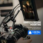 At each end, you have 1/4″-20 screw mounts with rubber-padded plates to protect your gear from scratches and slipping. The central locking knob is especially useful: by tightening it, you can simultaneously lock both ball heads and the rosette joint, which simplifies setup and readjustments mid-shoot. Despite its strong locking mechanism, the arm remains foldable, so you can easily pack it into a camera bag or rig case. With a load capacity of up to 2 kg (4.4 lb), this magic arm is powerful enough to support medium-weight monitors, LED panels, field recorders, or other rig-mounted accessories. Plus, the compact design (25 cm when extended) strikes a balance between reach and portability, making it a go-to for compact cinema rigs, DSLR setups, or portable studio configurations. The aluminium build paired with a smart locking system ensures that once you’ve placed your accessory, it stays put securely.