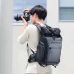 It’s designed to carry cameras (DSLR/mirrorless), lenses, accessories, and a laptop/tablet up to about 15.6″ in the dedicated compartment.
